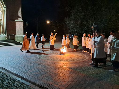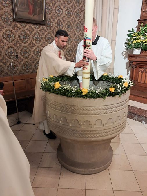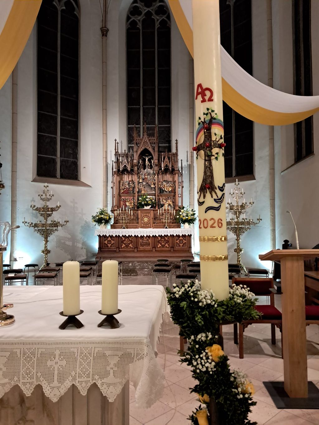 Unsere diesjährige Osterkerze hat unsere Küsterin Sylvia Stevens wieder mit viel Liebe gestaltet, wofür wir ihr sehr dankbar sind.